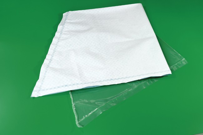 -In laminate made of absorbent celulose paper and polyethylene film, green (488-526).