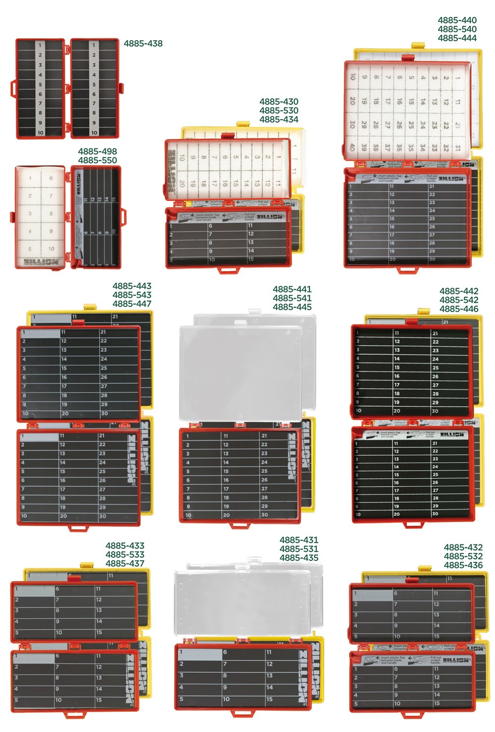 | 4885-430 | Espuma/magnético | 20/15 contagens | Removedor de lâmina | Vermelho | 96 | |
